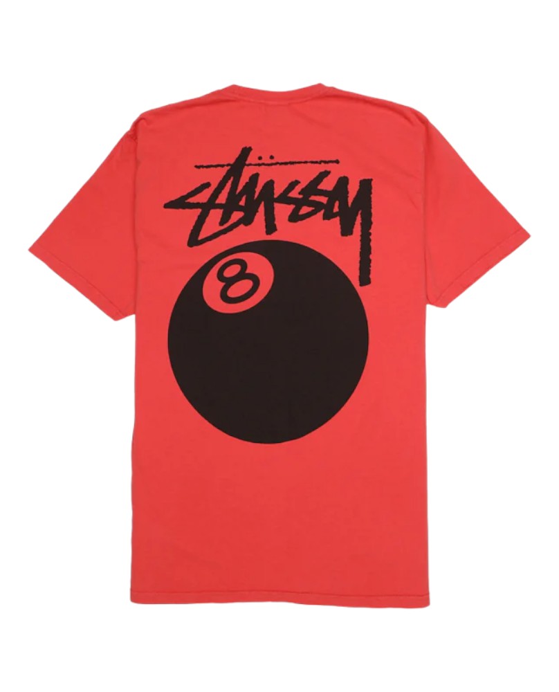 La camiseta Stussy 8 Ball Pigment Dyed Tee Guava es una prenda esencial que fusiona la estética urbana con el estilo clásico de Stussy.